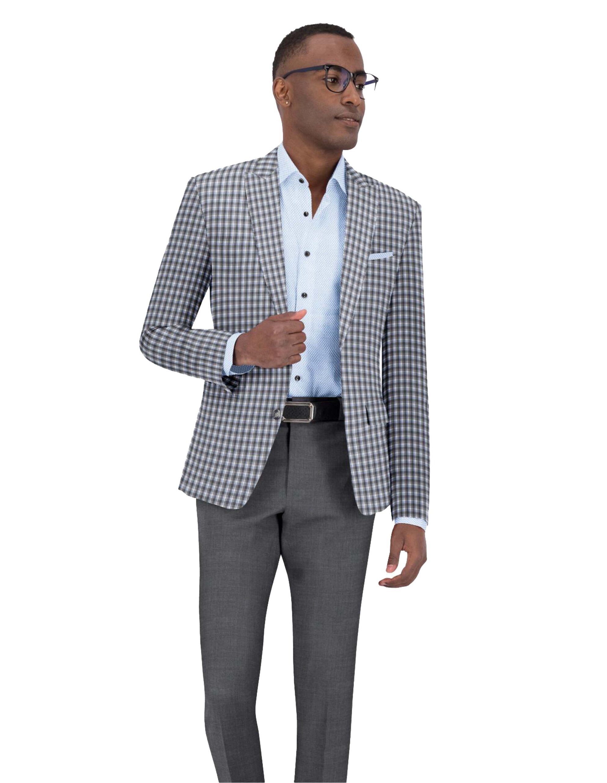 Imagine stepping into a room with the confidence that comes from wearing a jacket that combines classic elegance with modern style. That’s the experience you get with our Grey & Blue Check Jacket. Don’t just dress—make a statement.