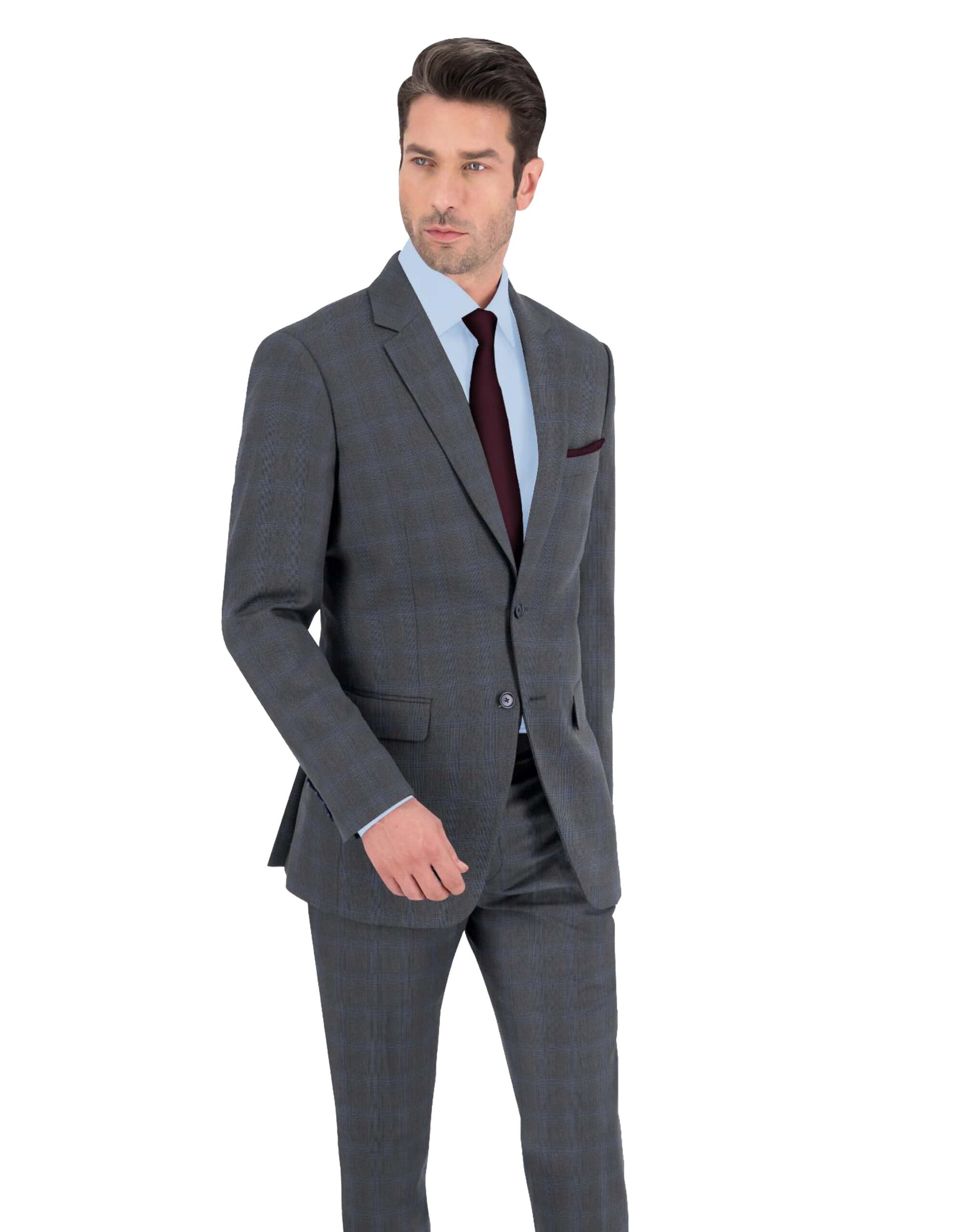 The grey blue check suit stands out as a quintessential piece in any wardrobe, celebrated for its exceptional versatility. This suit effortlessly transitions from formal to casual settings, making it an ideal choice for a myriad of events. Whether attending a business meeting, a wedding, or a social gathering, the grey blue check suit adapts with ease, ensuring you always look polished and appropriate.